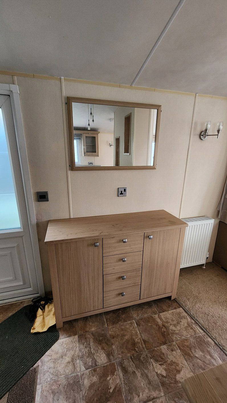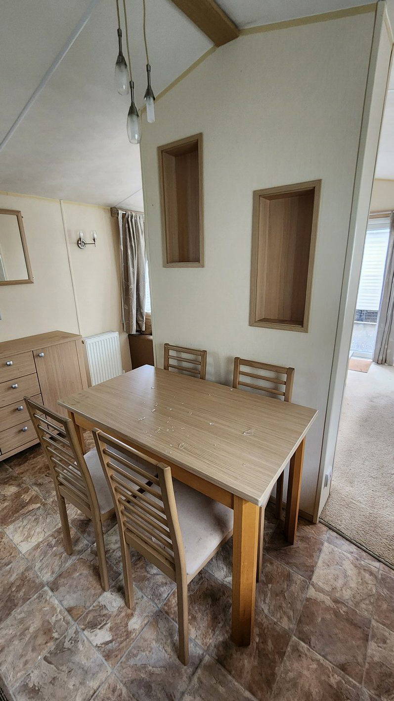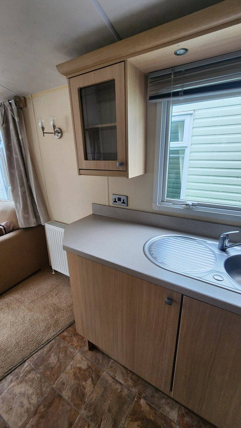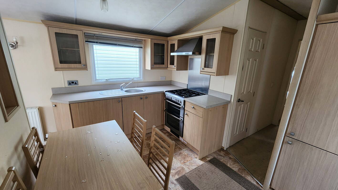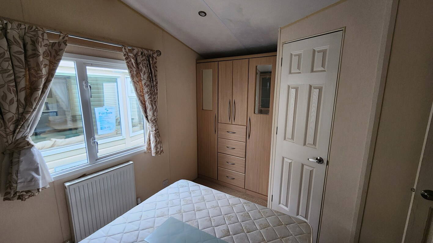 BK Sheraton 38’x12′ two bedrooms. Master bedroom double bed and ensuite toilet. Second bedroom with twin beds. WC and shower room. Double glazing & central heating. LPG combination boiler, cooker and lounge fire. Stock no.8