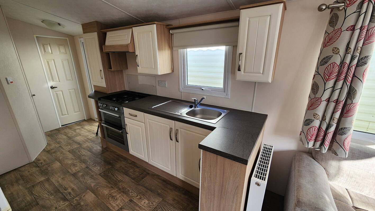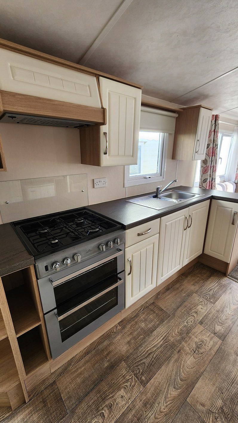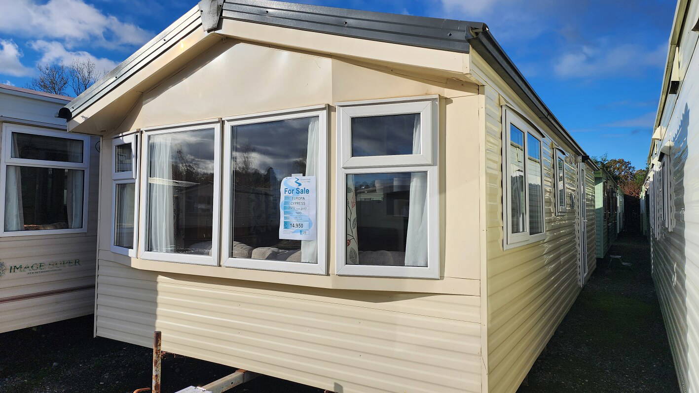 2017 Europa Cypress 28×12. Master bedroom double bed. Second bedroom with twin beds. WC and shower room. Double Glazing and Central Heating LPG boiler, cooker and lounge fire. Stock no.20