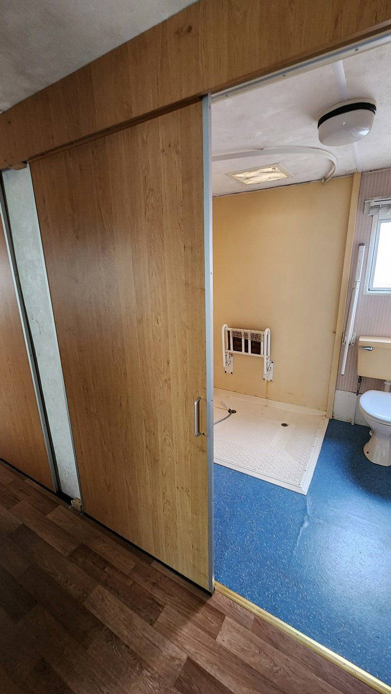Pemberton Sovereign 36×12. Disabled specification. Master bedroom two single beds with hoist. Second bedroom with twin beds. WC and walk in shower room. Central Heating LPG boiler, cooker and lounge fire. Stock no.42