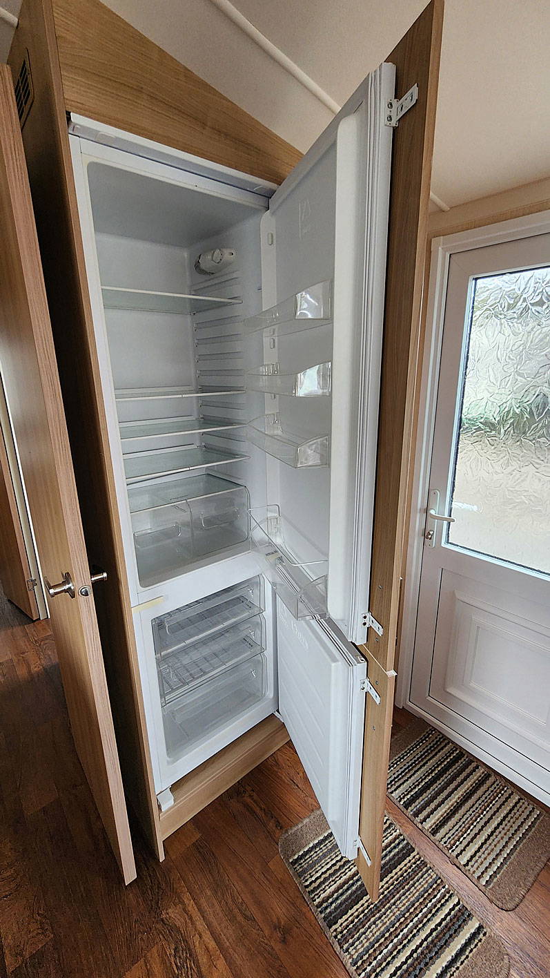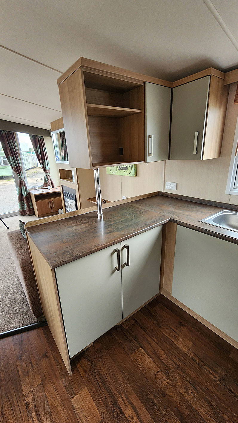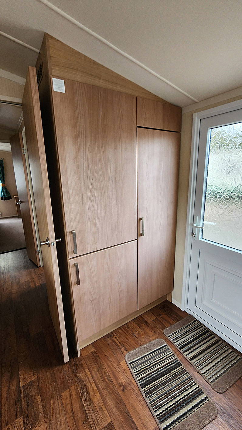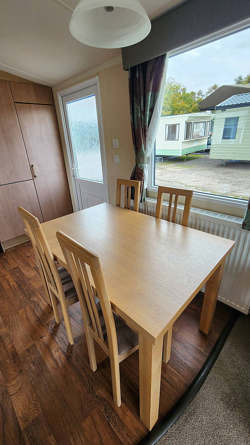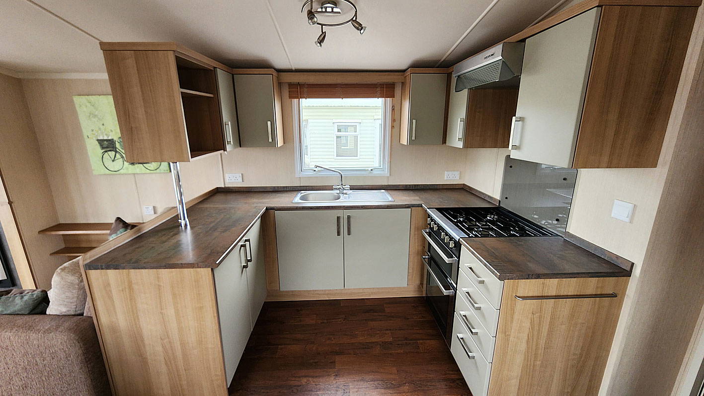 Swift Bordeaux 38’x12′ two bedrooms. Master bedroom double bed and ensuite WC. Second bedroom with twin beds. WC and shower room. Double glazing and central heating. LPG boiler and cooker, and electric lounge fire. Stock no.72