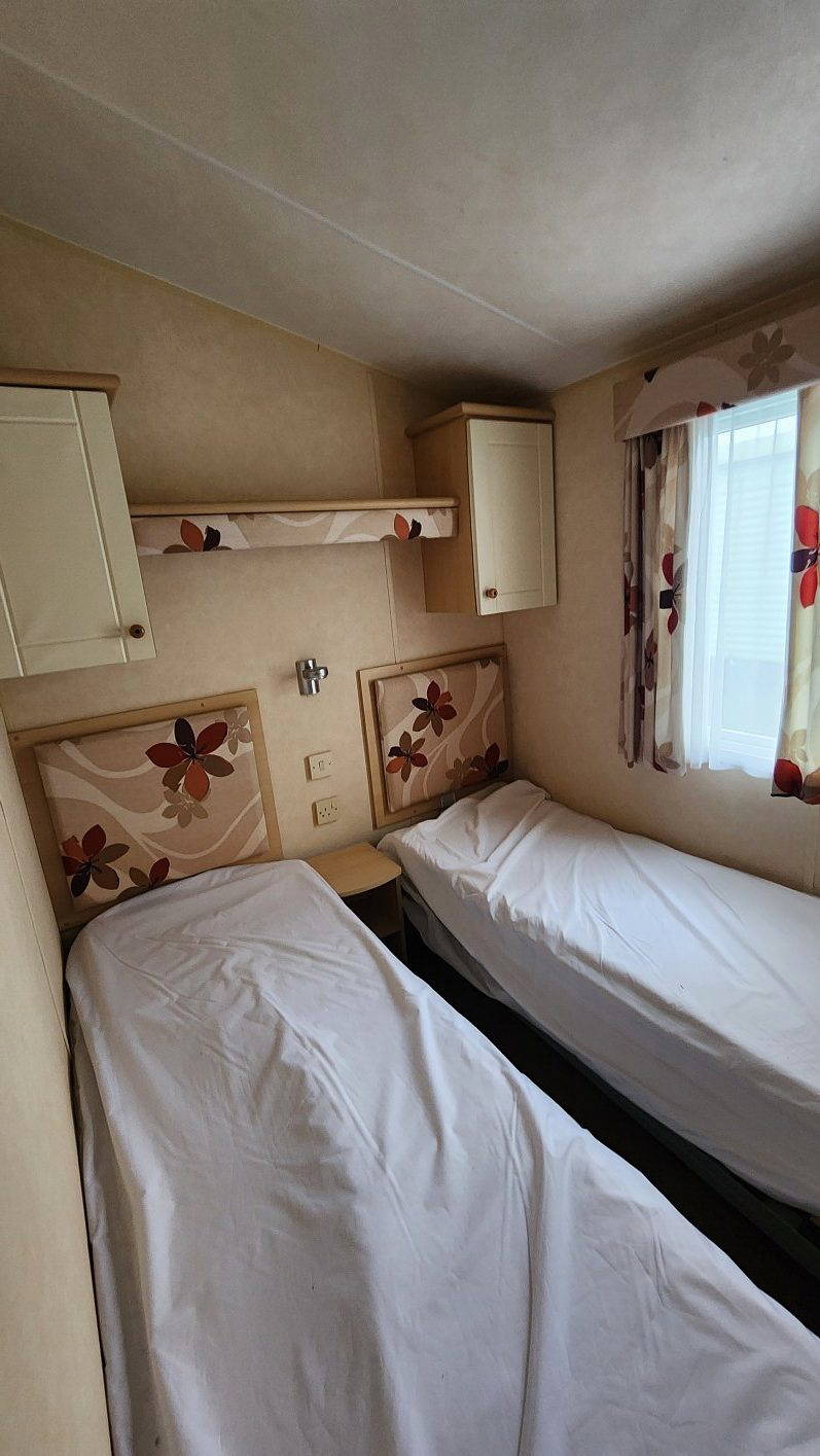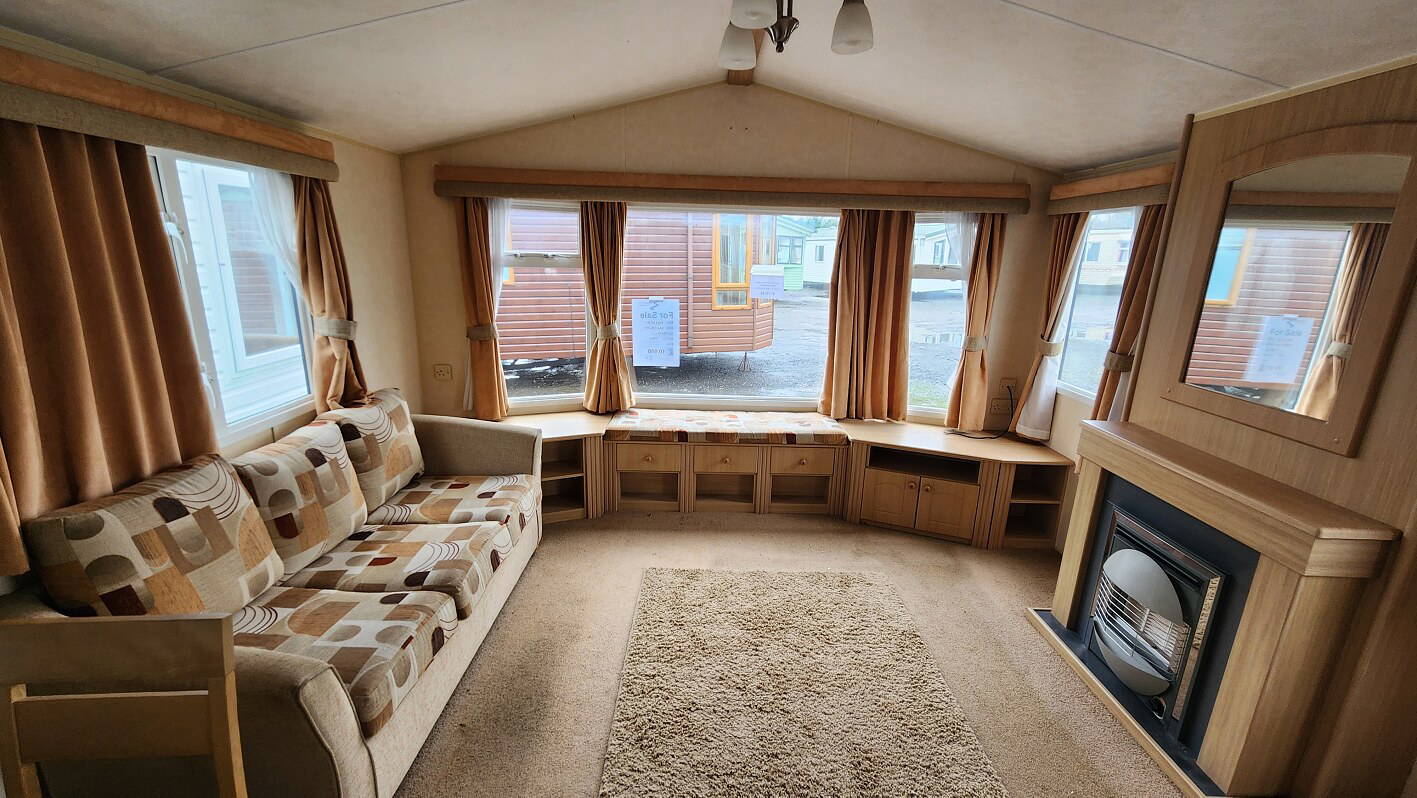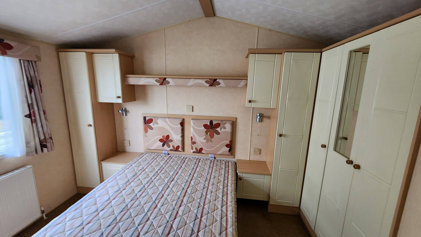 Willerby Salisbury 35’x12′  two bedrooms. Master bedroom double bed. Second bedroom with twin beds. WC and shower room. Double glazing and central heating. LPG water heater, cooker and lounge fire. Stock no.87