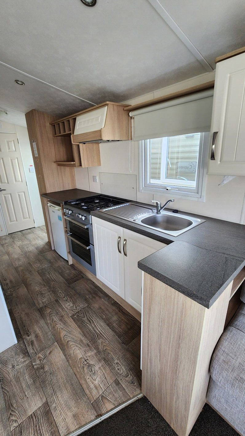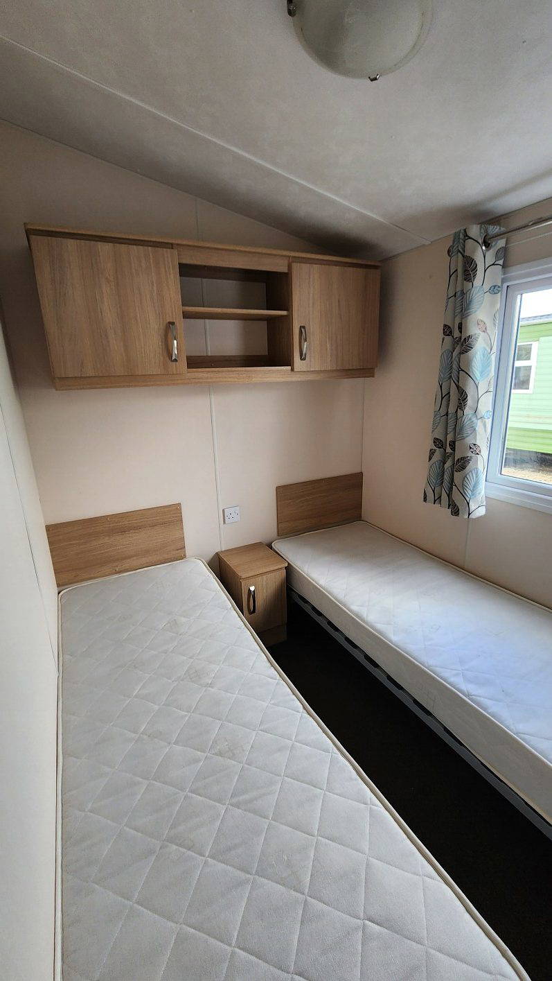 2017 Europa Cypress 26×12. Master bedroom double bed. Second bedroom with twin beds. WC and shower room. Double Glazing. LPG boiler, cooker and lounge fire. Stock no. 112